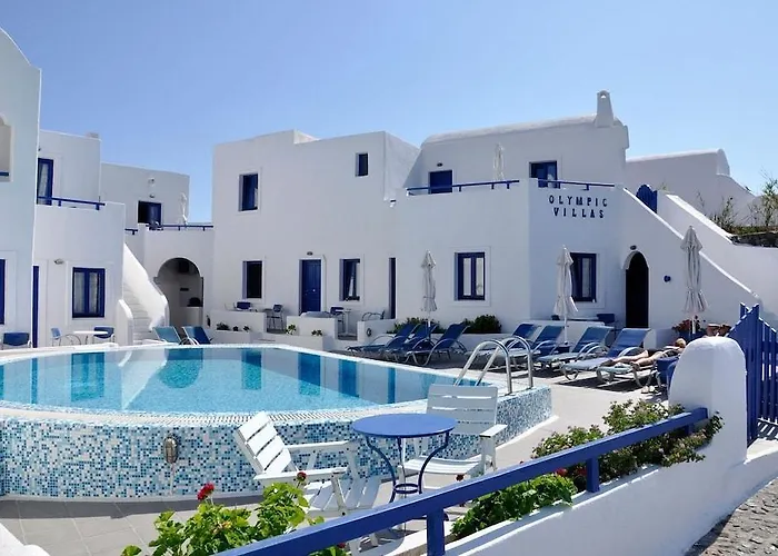 Skaros-Felsen ist ungefähr 4 km vom Hotel und die Katholische Kathedrale von Fira lässt sich in ca. 15 Fahrminuten erreichen. Santorini Vulkan liegt ebenfalls rund 20 Minuten mit dem Auto vom Olympic Villas entfernt. Zu den nahegelegenen kulturellen Angeboten gehört Museum des vorgeschichtlichen Thira (7 Kilometer von der Unterkunft entfernt). Der nächstgelegene Flughafen Santorin ist in einer 20 km Entfernung von der Unterkunft.